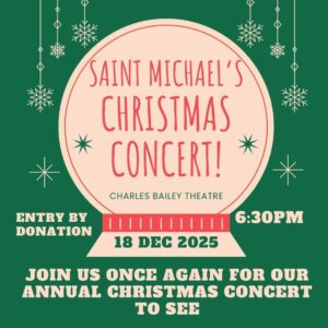 They are excited to bring you performances by Saint Michael’s School Choir, the Kindergarten class, and grades 1-7 performing an adapted “Merry Christmas Charlie Brown”!
